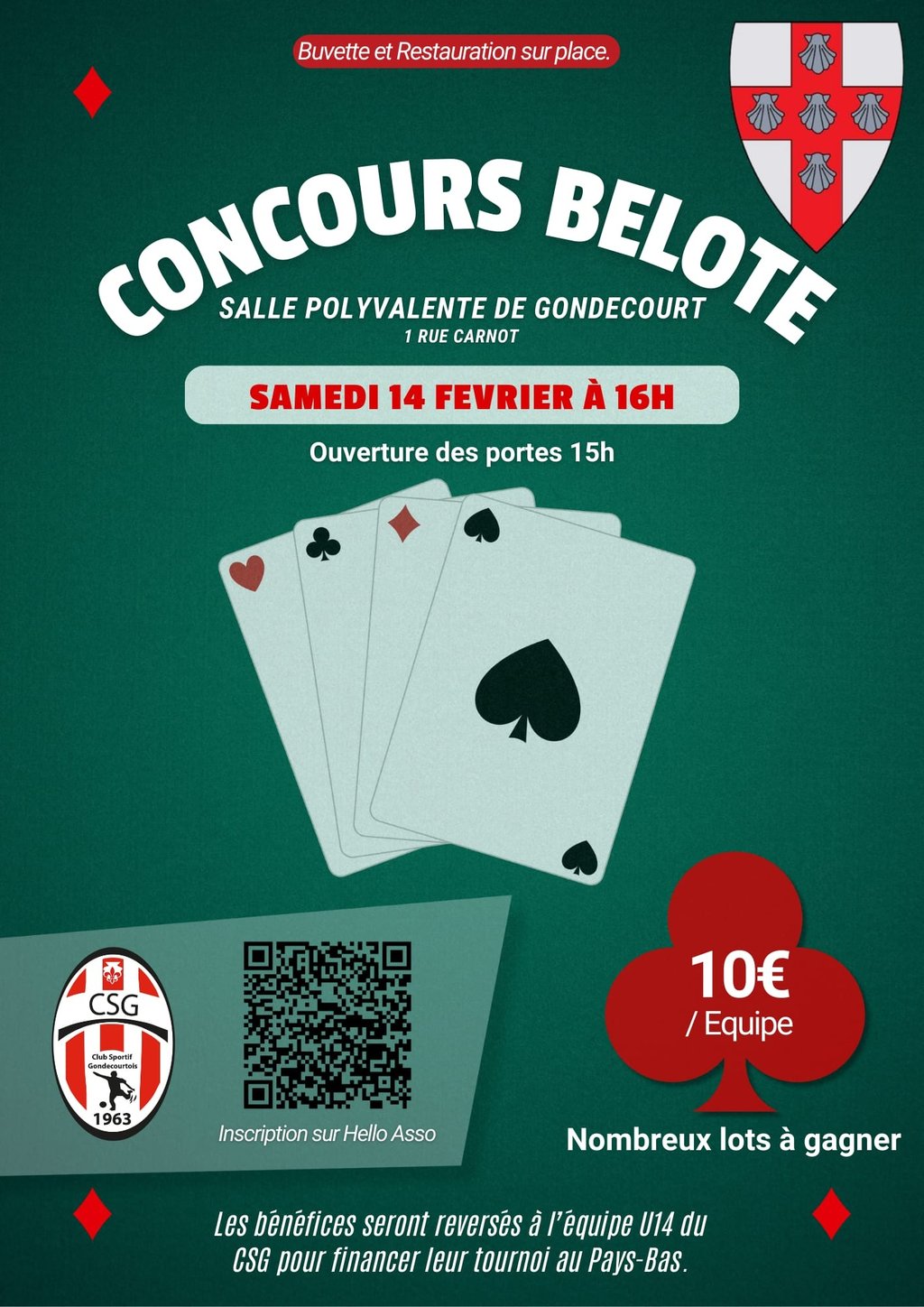 Les bénéfices seront reversés à l'équipe des U14 du CSG pour financer leur tournoi de foot au Pays Bas